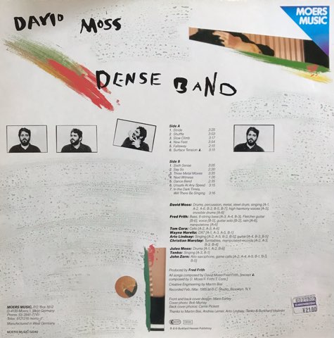 NYの奇才パーカッショニストDavid MossがChristian Marclay、Arto Lindsay、Fred Frith、John Zone、Tom Cora、Wayne Horvitz、Jules Moss、TenkoというNY前衛オールスターのようなメンツでドイツの先鋭的なジャズ・レーベルMoers Musicからリリースした85年作。アヴァン・ミニマル「Slow Climb」、Arto LindsayのフリーキーなギターとChristian Marclayのターンテーブルの夢の共演が聴ける「Three Metal Moves」、ほぼChristian Marclayのターンテーブル・ソロ「Next Witness」など収録。ところどころに捻じれたユーモアも感じられるNYアヴァンギャルド傑作。