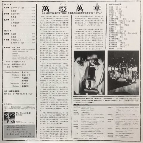 日本が誇るサイケデリック即興音楽集団、タージ・マハル旅行団にも在籍していたシンセサイザー、ヴァイオリン、ギターなどのマルチ奏者、豊田貴志が音楽を担当した真言宗奉賛映画「萬橙萬華」のサウンドトラック。メディテーティヴなシンセサイザーが幾重にも重ねられた極彩色の曼荼羅ニューエイジ。