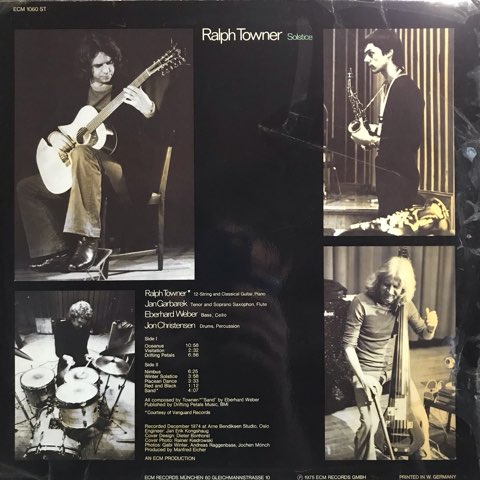 ECMを代表するギタリストRalph TownerがEberhard Weber、Jon Christensen、Jan GarbarekというECMオールスターのようなメンツで録音した75年作。緊張感溢れるインタープレイの中にもアンビエンスが感じられる静謐さと先鋭性を兼ね備えたECMらしい傑作。