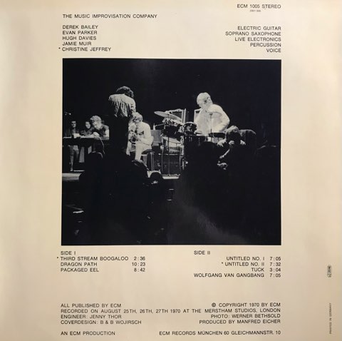 ECMから極初期にリリースされたDerek Bailey、Evan Parker、Hugh Davies、Jamie Muir、Christene Jeffreyによる70年作。ECMの先鋭的な面を象徴する、メロディーもハーモニーも決まったリズムも一切ないその場その瞬間で生み出される緊張感溢れる演奏を記録したフリー・インプロヴィゼーション・クラシック。