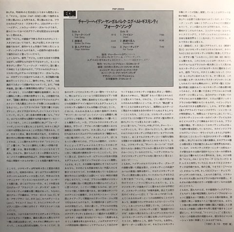 ECMからリリースされたEgberto Gismonti、Charlie Haden、Jan Garbarekによる1980年の名盤「Magico」の録音から半年後に同メンバーでレコーディングされた81年作。国籍もスタイルも違う3人の、ジャズやブラジル音楽の枠に捉われない独自のムードを持ったアンサンブルによる即興演奏が素晴らしい傑作。視聴は大空に羽ばたいていくような開放感に溢れた「Cego Aderaldo」、Steve Reichに捧げたという、Gismontiのピアノがミニマルに美しく響く「Equilibrista」。