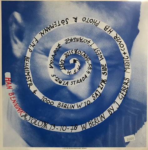 Eric Dolphy「Last Date」にMisha Mengelbergとともに参加しその後67年にフリー・インプロヴィゼーション団体/レーベル「I.C.P」を結成するオランダの奇才ドラマーHan Benninkがドイツのフリー名門FMPから79年にリリースしたソロ作品。ドラム、パーカッションだけでなくピアノ、トロンボーン、クラリネット、バンジョー、さらにはテープや石、タイプライター、時計まで駆使して変幻自在に繰り広げられる、Han Benninkらしい型にはまらないユーモラスなフリー・インプロヴィゼーションを聴くことができます。