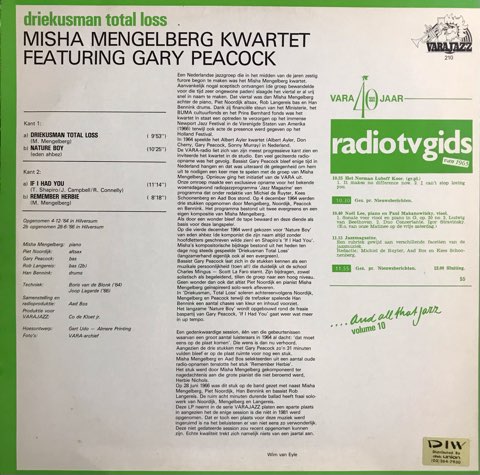 Eric Dolphyの最晩年の作品「Last Date」に参加していたヨーロッパ・フリージャズ / フリー・インプロヴィゼーション第一世代のピアニストMisha MengelbergとドラマーHan Benninkが、Dolphyの死から半年後の64年12月にAlbert Aylerトリオでヨーロッパに来ていたベーシストGary Peacockを迎えて録音したA面と、66年に録音したB面からなる発掘音源。Misha MengelbergとHan Benninkは67年にフリー・インプロヴィゼーション団体/レーベル「I.C.P」を結成しますが、その萌芽が見られるMisha Mengelbergの不協和で音数を厳選した、Thelonius MonkやDuke Ellington、Herbie Nicholsの影響から次のアヴァンギャルドなステップに移行していくような演奏がゾクゾクするほどスリリング。