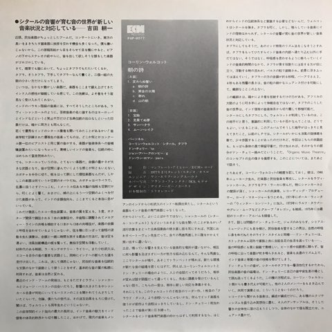エスノ・ジャズ・ユニットOregonやCodonaなどで知られるシタール奏者/パーカッショニストCollin WalcottがECMからリリースした77年作。後にCodonaを結成することになるDon CherryほかJohn Abercrombie、Dom Um Romao、Pelle Danielssonが参加。このユニークなメンツが期待させるとおりの、どこでもない独自の民族音楽といったミニマルで無国籍な演奏が空間を感じさせる音響のなかを伸びやかに展開していくECMならではの傑作!