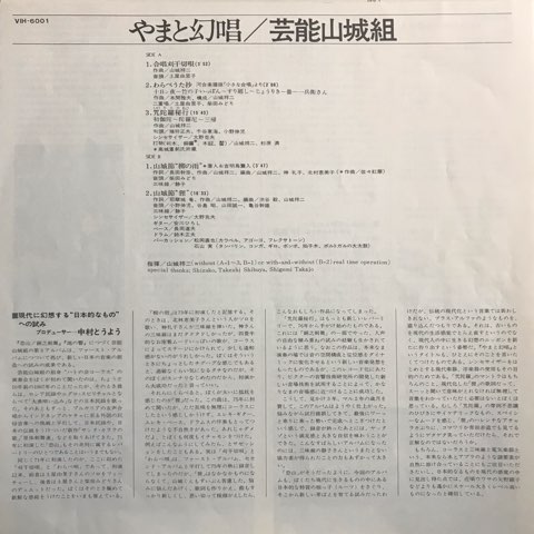 1988年のアニメ映画「AKIRA」の音楽を担当したことでも知られる山城祥二率いるコーラス・グループ、芸能山城組が中村とうようプロデュースで制作した77年サード・アルバム。インドネシアのケチャやブルガリアン・ヴォイスなど世界の民族音楽を主題にした作品をリリースしていますが、今作は日本の民謡、わらべうた、声明を取り上げています。シンセサイザーとコーラスが宇宙遊泳している「咒陀羅秘行」、オリエンタル・プログレッシブ・ファンク「山城節“狸”」など、「日本的なもの」を実験的でサイケデリックに仕上げた怪盤。空間を感じさせる録音も素晴らしい。