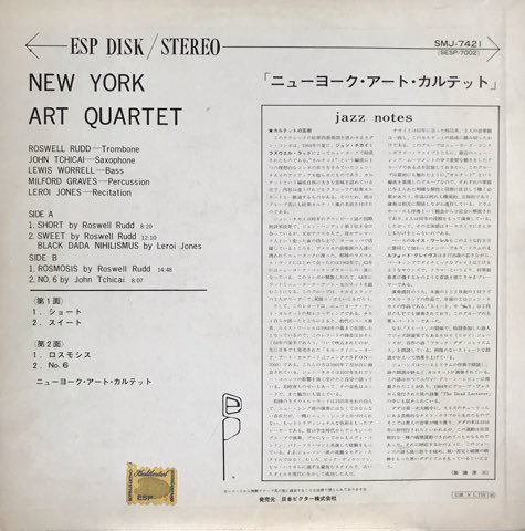 Ornette Coleman「Town Hall 1962」とともにESP日本発売第一弾だったらしい日本盤オリジナル。