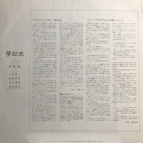 ジャパニーズ・プログレッシブ・ロック・バンドFAR EAST FAMILY BANDのキーボーディスト、伊藤詳が房総半島にある法受山、妙厳寺の空き寺で生活しながら作曲したというスピリチュアルでメディテーティヴなニューエイジ作品。元タージ・マハル旅行団の豊田貴志もヴァイオリンで参加しています。全体的にリラックスした穏やかなサウンド・プロダクションで、その中でも気が遠くなっていきそのまま帰って来れなくなりそうなアンビエント・サイケ「調和陽光」が格別の素晴らしさ。