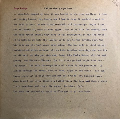 John Surmanのフリー・ジャズ・ユニット「The Trio」のメンバーで、フリー・インプロヴィゼーションのシーンなどでも活動しECMにも数々の名作を残しているアメリカ人ジャズ・ベーシストBarre Phillipsの84年ベース・ソロ作。多重録音も駆使した、ミニマルからドローン、アブストラクトなものまでイマジネーションに溢れる変幻自在の演奏を聴かせてくれるコンテンポラリー作品。ドイツ・トンスタジオ・バウアーでのエンジニアMartin Wielandによる、Barre Phillipsの息遣いまで聴こえるリアルな録音も秀逸。