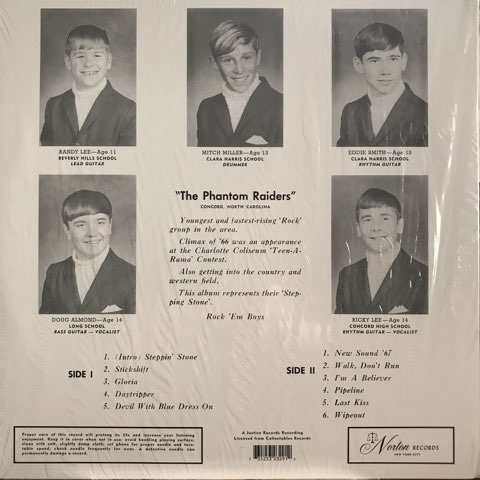 オリジナルは数々の激レア・ガレージをリリースしている伝説の短命レーベルJusticeから67年に発売された、平均年齢13歳という米5人組ティーン・ガレージ・バンドThe Phantom Raidersの唯一作。The MonkeysやJ. Frank Wilsonなんかをローティーンならではの甘酸っぱさでカバーしています。このアメリカのティーン・ガレージ・バンドでしか味わえない儚げなムードが最高!
