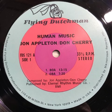 頭の中を開陳したような音風景が展開される電子音楽傑作「The World Music Theatre Of Jon Appleton」でも知られるJon Appletonと唯一無二のトランペット奏者Don Cherryによる異色のデュオ作。バンブー・フルート、カリンバ、コルネット、パーカッションや奇声まで駆使したDon Cherryの演奏とJon Appletonのぶっ飛んだシンセがオーガニックに融合した異星の民族音楽。最初から最後まで変な音だらけで最高です!Don Cherryの妻Moquiによる内ジャケ含めたアートワークも秀逸。