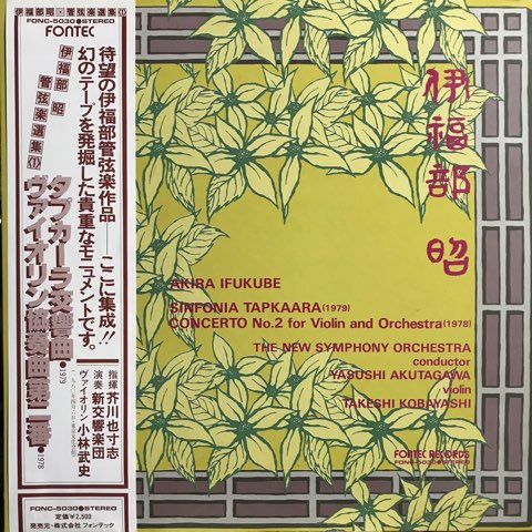 「ゴジラ」のテーマで知られる独学の作曲家、伊福部昭が幼少を過ごしたという北海道の寒村に住んでいた日本の先住民族アイヌの人々に対する共感とノスタルジアで彩られた代表作「タプカーラ交響曲」。芥川也寸志コンダクトによる80年の演奏を収めた一枚。郷愁を乗せて雄大に律動していく、スケールのデカすぎる伊福部流ミニマル・ミュージック。強烈!