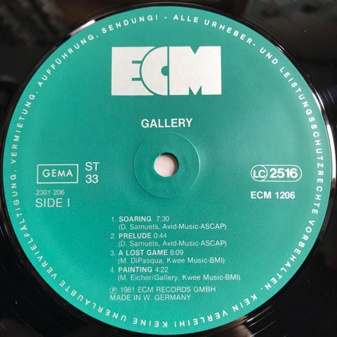 ECMに数々の録音を残したアメリカ人ジャズ・チェロ奏者David DarlingやDouble Imageでも知られるヴィブラフォン/マリンバ奏者David Samuels、エスノ・ジャズ・グループOregonのリード奏者Paul McCandlessなどからなるECMらしい変則クインテット編成ユニットGalleryの82年作。Steve Reich的ミニマルなDavid Samuelsのヴィブラフォン、David Darlingの幽玄なチェロ、Paul McCandlessの無国籍なリードが交錯し独自の音場を創り出すECMきっての傑作!