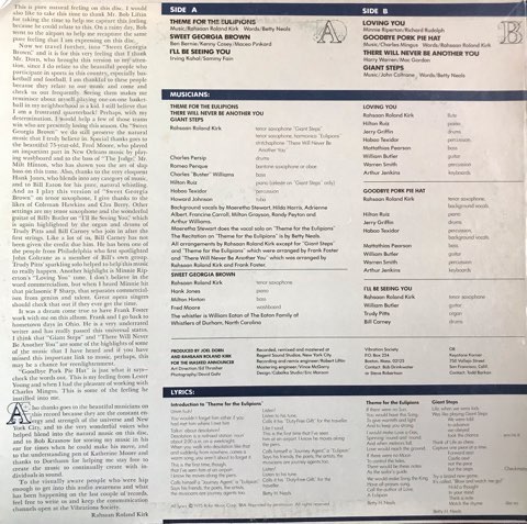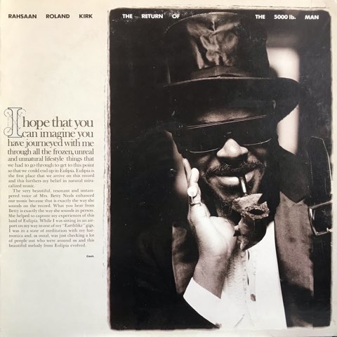 複数のリード楽器を同時に操る盲目の鬼才ジャズ・ミュージシャンRolan Kirkがほぼワン・ホーンで制作した「天才ローランド・カークの復活 」の邦題で知られる75年作。時期、タイトル的に脳卒中で倒れた後にリリースされたように思いますが、実際は倒れる前に録音されてます。ジャズ、ソウル、ファンク、ブルースなんかの黒人音楽が混然一体となり、美しさや哀しみや優しさ、楽しさに寂しさなどあらゆる感情が詰め込まれた、Roalnd Kirkという音楽を聴いているような気にさせられる傑作!様々なミュージシャンにフェイバリットに挙げられることも多い作品です。このMinnie Riperton「Loving You」」のカバーは死の間際に聴きたい曲のひとつ。