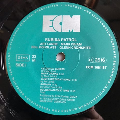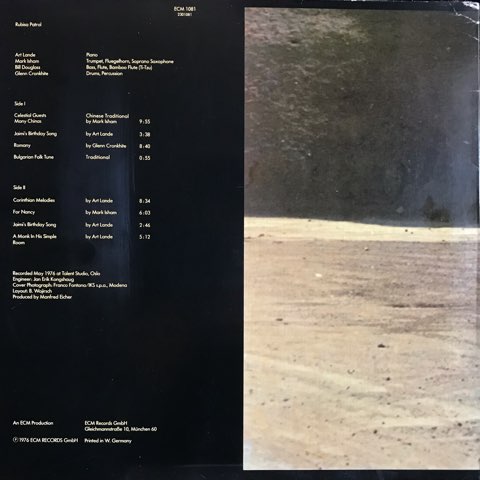 アメリカ・ニューヨーク出身のピアニストArt LandeがMark Isham、Bill Douglass、Glenn Cronkhiteのカルテット編成でECMからリリースした76年作。尺八で吹かれる中華風メロディーのザ・オリエンタルなイントロダクションに不意を打たれたあと、Glenn Cronkhiteのキメの細かい打楽器とArt Landeのクリスタルな音色のピアノ、Mark Ishamの朝の日差しのように柔らかなトランペットに一気にき込まれる1曲目の「Celestial Guests / Many Chinas」始め、静謐で緊張感のあるインタープレイが展開されるECMらしい作品。今作のような音数の少ない演奏ではスタジオ・オスロでの名エンジニアJan Erik Kongshaugによる空間を感じさせる録音の素晴らしさがより際立ちます。是非これは音の良いドイツ・オリジナルで!