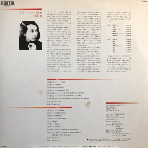 日本が誇る現代音楽作曲家・武満徹と、尹伊桑(ユン・イサン)に師事した田中賢が写真家の篠山紀信によるビデオ・ディスク作品「シルクロード(中国編)」のために制作した音楽をレコード用に編集しなおした82年作。雅楽や神楽で使われる縦笛・篳篥やヴィブラフォンが電子的な響きを感じさせるオーケストラに溶け合った、武満作品の中でも屈指の名曲といえる「雲崗石窟」をはじめ、武満ならではの音響に彩られた楽曲の数々を収録。