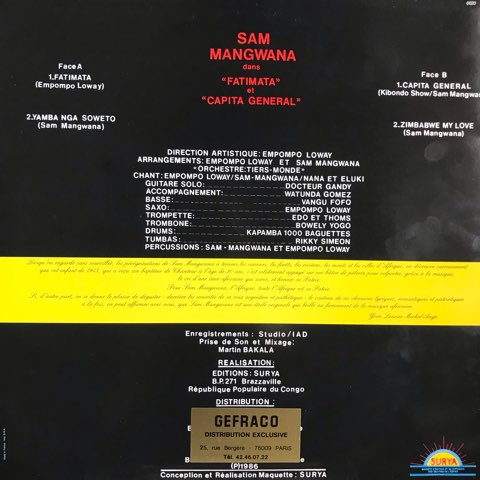 アフリカ南西部に位置するアンゴラ出身のシンガー/パーカッショニストSam Mangwanaの86年作。50年代からのキャリアを持つサックス奏者のEmpompo Lowayが参加。四つ打ちのビートと瑞々しい音色のギターを中心に管楽器やコーラスが彩るカラフルでトロピカルなミニマル・サウンドに、流れるようなSam Mangwanaのヴォーカルが一体化したひたすらに気持ちいい作品です。