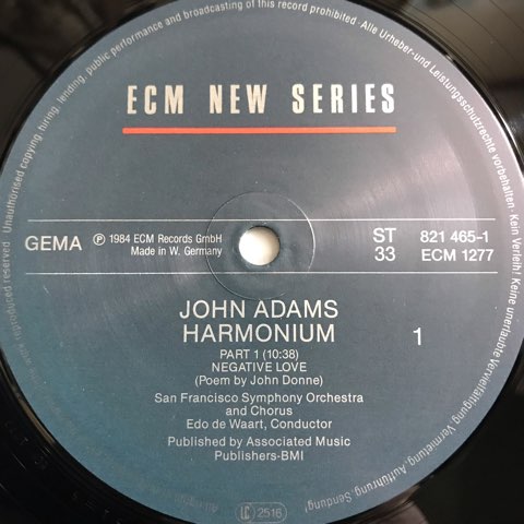 Steve Reich「Variations For Winds, Strings And Keyboards」とのカップリングで収録された「Shaker Loops」でも知られるアメリカのミニマル第2世代〜ポスト・ミニマルの作曲家John AdamsがECM New Seriesからリリースした84年作。John Adamsの名を世界に知らしめた、透明感のあるオーケストラと荘厳なコーラスが織りなす珠玉のミニマル・ミュージック。