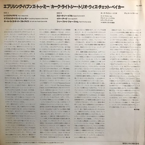 デトロイト出身のベテラン・ジャズ・ピアニストKirk LightseyがChet Bakerをゲストに迎えてオランダのタイムレス・レーベルに録音した83年作。やはりChet参加の2曲が素晴らしく、中でも「Everything happens to me」はChetのヴォーカル・トランペットが聴こえた瞬間に強烈に退廃のムードが立ち込める、ドラッグでボロボロになっていた80年代Chetの耽美的な魅力が凝縮された1曲。