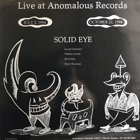 西海岸ロサンゼルス・アンダーグラウンドで70年代中期から活動している実験音楽集団LAFMS(Los Angeles Free Music Society)の中心人物Rick PottsとJoseph Hammerによって83年に結成されたDinosaurs With HornsにSteve Thomsenを加えたユニットSolid Eyeの97年2ndアルバム。この圧倒的に奇妙でユニークでクールなアヴァンギャルドさはLAFMS一派ならでは。裏ジャケのRick Pottsの絵はお部屋に飾りたい!