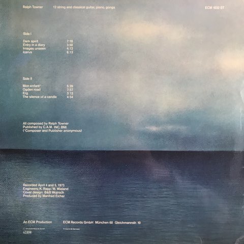 エスノ・ジャズ・グループOregonでも知られるギタリストRalph Townerが74年にリリースしたECM第2作目となる、12弦ギター、クラッシック・ギター、ピアノ、ゴングを用いて一人で多重録音した作品。先鋭的ながら美しく透明感のある演奏やアンビエンスを感じさせるジャケットのアートワークなど、ECMのエッセンスが凝縮されたレーベルの初期を代表する傑作です。