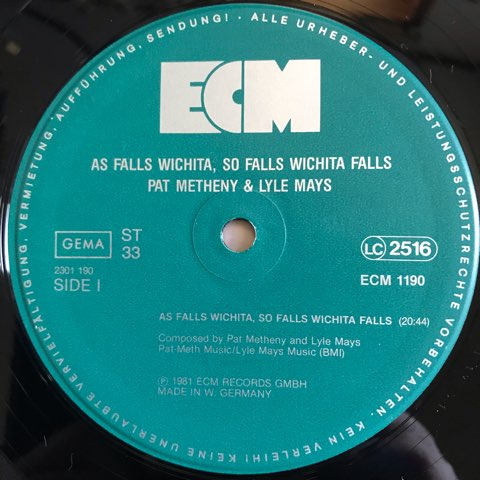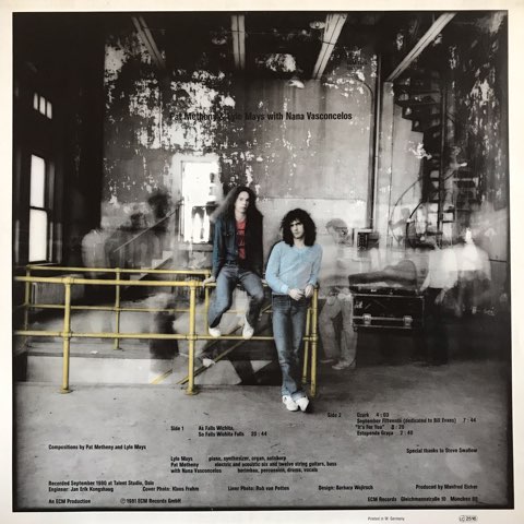Pat Methenyが盟友Lyle Mays、ブラジルの奇才パーカッショニストNana Vasconcelosと録音した81年ECM作。A面いっぱいに収録された「As Falls Wichita, So Falls Wichita Falls」は、Pat Metheny・Lyle Maysの創り出すスペーシーなエレクトロニック・サウンドとNana Vasconcelosのプリミティヴな打楽器が化学反応を起こし、聴いたことのないところに連れて行ってくれる壮大な脳内旅行音楽。ほかにもBill Evansの死後数日後に書かれた追悼曲「September Fifteenth」、Pat Methenyの魅力が凝縮された「It's For You」、Nana Vasconcelosのサウダージ溢れるワードレス・ヴォイスが聴けるブラジリアンな「Estupenda Graca」など豊かな音楽性に満ちたアルバム通して本当に素晴らしい、Pat Methenyの数々の名盤の中でも最高傑作に挙げられる一枚。