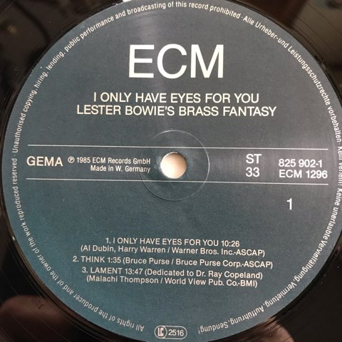 シカゴを代表するフリー・ジャズ・ユニットArt Ensemble Of ChicagoのLester Bowieが中心となったトランペット、チューバ、フレンチ・ホルン、トロンボーン、フリューゲルホーンの総勢9人からなる金管アンサンブルLester Bowie's Brass FantasyがECMからリリースした85年作。フリーキーさはなくどちらかというとポップよりな作品ですが、ルーズで猥雑ながらどこか懐かしさも感じさせる甘美で幻想的なハーモニーはまさにブラス・ファンタジー。素晴らしいです。