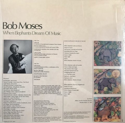 60年代に10代のころからRoland KirkやGary Burtonなどと共演、Pat Methenyの76年デビュー・アルバム「Bright Size Life」にも参加していたNYの奇才ドラマーBob Mosesの83年作。Pat Methenyとの共同プロデュース、Lyle MaysやNana Vasconcelos、Bill Frisellに日野皓正も参加した総勢27名の編成によるビッグ・バンド・アルバム。ヴォイス、マリンバ、シンセ、ギター、チューバなどそれぞれの楽器がユーモラスに響きあいエスニックでシュルレアリスティックな第三世界を創り出す「Lava Flow」や「For Miles」、「The River」など、Bob Mosesならではの奇妙でユニークなラージ・アンサンブルが聴けます。最高!