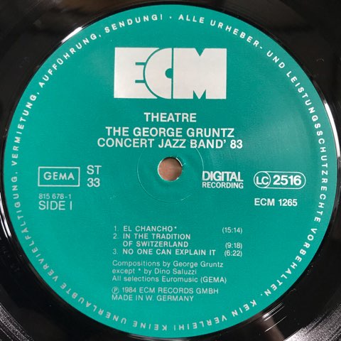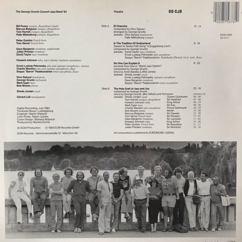 スイス人ピアニストGeorge GruntzがECMからリリースした総勢18名によるビッグ・バンド・アルバム。Dino Saluzzi、Bob Moses、Julian Priester、Charlie Mariano、Palle Mikkelborg、Howard Jonson、Mark Eganといった豪華メンバーが参加。Manfred Eicherのプロデュース力が光る、ECMカラーに染め上げたこの浮遊感溢れるビッグ・バンド・サウンドは他では聴けません!