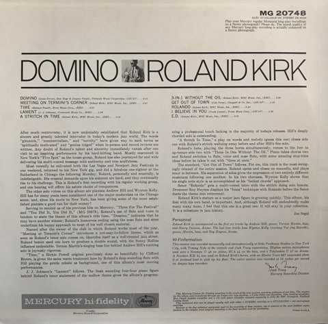 鬼才マルチ・リード奏者Rolando Kirkの62年作。全体でみると比較的ストレート・アヘッドな作品ですが、複数の楽器を同時に吹いたり、吹きながら同時に歌う特殊奏法はすでにここで完成されており、とくに自作曲「3-In-1 Without The Oil」はイントロから終わりまでKirkのすべてが凝縮されたような素晴らしくぶっ飛んだ演奏を聴くことができます。やはりKirkは初期からワン&オンリー!