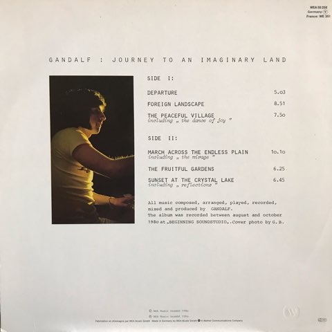 オーストリアのマルチインストゥルメンタル奏者Heinz Stroblによるプロジェクト・ユニットGandalfの80年1stアルバム。タブラが印象的なエスノ・ニューエイジ「Departure」から始まりノンビートでひたすらシンセサイザーが浮遊する「Sunset At The Crystal Lake」で昇天して終わる、タイトル通り架空の幻想世界に連れて行ってくれる脳内旅行音楽。