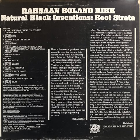 盲目の鬼才ジャズ・ミュージシャンRolan Kirkがテナー、マンゼロ、ストリッチ、ピッコロ、クラリネットなどの管楽器だけでなく、バスドラ、シンバル、ティンパニ、ベルなど様々な楽器を駆使し多重録音なしでほぼひとりで創ったという71年作。循環奏法や複数管楽器の同時吹き、オルゴールや鳥の鳴き声、自然音など、オーバーダブなしエフェクトなしとはとても思えないほどに豊かな音に彩られたRoland Kirkらしさが満載の濃い〜アルバム。そしてそのなかで「Day Dream」のような美しい曲の素晴らしさも際立ちます。大傑作!