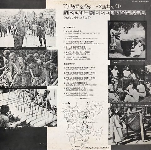 オリジナルは1937年にSP6枚組でリリースされた、中央アフリカに位置するベルギー領コンゴ(現在はコンゴ民主共和国)で1935年にピグミー諸部族などの民族音楽を現地録音した「The Belgian Congo Records」を、中村とうよう監修の「アフリカ音楽のルーツを訪ねて」シリーズの第一弾として再発した一枚。摩訶不思議なミニマル・ミュージックや高度な音楽性を持った合唱、プリミティブながら複雑なリズムの打楽器による演奏などを収録した、数あるアフリカ民族音楽のフィールドレコーディングものの中でも重要な位置を占める名作。