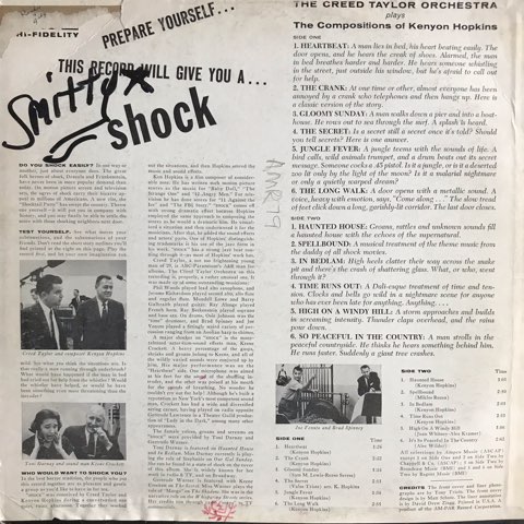 Impulse!やCTIの設立者でジャズ、フュージョン、ボサノヴァなど数々の名盤に深く関わっている奇才プロデューサーCreed Taylorコンポーズの58年作。当時映画やテレビで人気だったホラーやサスペンスの要素を音楽に取り込んだ企画盤で、Phil WoodsやMundell Loweも参加したムーディーなジャズをベースに心臓の音や水の音、笑い声、嵐の音、エキゾチカなジャングル音などエフェクティブな効果音がふんだんに使われたモンド傑作。