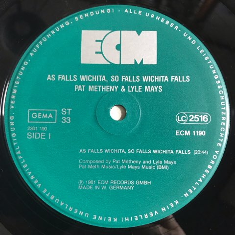 Pat Methenyが盟友Lyle Mays、ブラジルの奇才パーカッショニストNana Vasconcelosと録音した81年ECM作。A面いっぱいに収録された「As Falls Wichita, So Falls Wichita Falls」は、Pat Metheny・Lyle Maysの創り出すスペーシーなエレクトロニック・サウンドとNana Vasconcelosのプリミティヴな打楽器が化学反応を起こし、聴いたことのないところに連れて行ってくれる壮大な脳内旅行音楽。ほかにもBill Evansの死後数日後に書かれた追悼曲「September Fifteenth」、Pat Methenyの魅力が凝縮された「It's For You」、Nana Vasconcelosのサウダージ溢れるワードレス・ヴォイスが聴けるブラジリアンな「Estupenda Graca」など豊かな音楽性に満ちたアルバム通して本当に素晴らしい、Pat Methenyの数々の名盤の中でも最高傑作に挙げられる一枚。