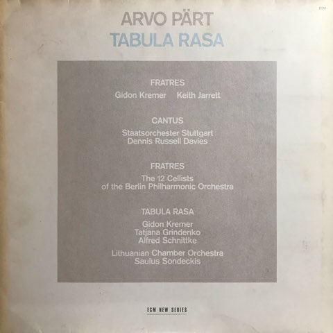 「鏡の中の鏡」(Spiegel in Spiegel)で知られるエストニアの現代音楽作曲家Arvo PartがECM NEW SERIESからリリースした84年作。 演奏はKeith JarrettやGidon Kremer、シュトゥットガルト国立管弦楽団など。Gavin Bryars「The Sinking Of The Titanic」にも通じる、全編に渡って退廃的で悲しみに満ちながらも甘美なムードを纏った作品。