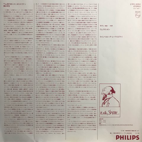 「嫌がらせ」「癪の種」「自尊心を傷つけるもの」という意味を持つといわれるタイトル、1分程度の曲を840回繰り返すスコアというErik Satieのひねくれた部分が最も出たような奇曲「Vexations」を、あまたのSatie弾きの中でもひときわ異彩を放つ、その時が止まっているようなあまりにも遅い演奏で知られるオランダのピアニストReinbert de Leeuwが録音した83年作。この不思議なコード感のフレーズに繰り返し聴けば聴くほどSatieの世界にどっぷりとハマっていくこと必至です。鬼ディープ!