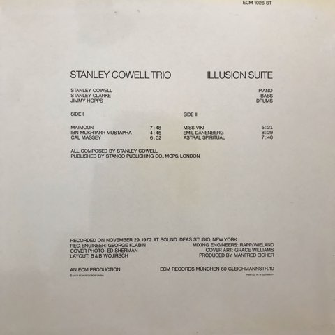 スピリチュアル・ジャズ名門ストラタ・イースト・レコード・レーベルの共同設立者でジャズ・ピアニストStanley CowellがECMからリリースした73年作。Stanley Cowellのクラシカルで瑞々しいピアノが聴ける「Maimoun」、エレピやカリンバも入ったミニマルな「Ibn Mukhtarr Mustapha」、粘っこくグルーヴする「Miss Viki」など、Stanley Clarkeの極太ベースも全編に渡って印象的に響くスピリチュアルでファンキーなStanley Cowellを代表する作品。