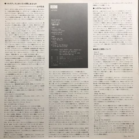 Ralph TownerがEberhard Weber、Jon Christensen、Jan Garbarekと録音した75年「Solstice」の続編となるECMからの77年作。前作同様に静謐さと先鋭性を兼ね備えたECMらしい傑作です。オスロ・タレント・スタジオ録音でエンジニアはJan Erik Kongshaug。