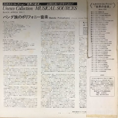 中央アフリカ共和国における最大の民族集団、バンダ族のポリフォニー音楽を現地録音したユネスココレクション〈世界の音楽〉シリーズからの一枚。冒頭1曲目に針を落とすと響き渡る、オンゴと呼ばれるジャケット右端の見た目も音も異形のホルンによる不協和な大合奏からいきなり強烈です!木製ラッパ、ムバヤによるアンサンブルも凄い!これこそ野生の思考。民族音楽大名盤。