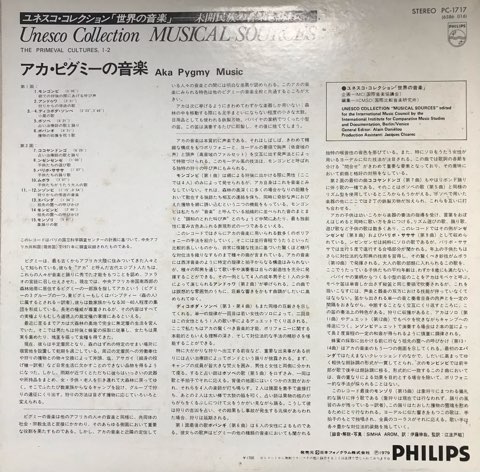 アフリカ大陸にもっとも古くから居住していると言われるピグミーの音楽を中央アフリカ共和国で71年に現地録音したユネスコ・コレクション〈世界の音楽〉シリーズの一枚。中でも南西部に居住するアカと呼ばれるグループに焦点を当てており、Steve Reichにも大きな影響を与えたと言われるミニマルで精緻な構造のポリフォニーがたっぷり堪能できるピグミー音楽のレコードの中でも名作とされるアルバムです。やはり西洋音楽の影響力から遠い中央アフリカの民族音楽は素晴らしいものが多い!