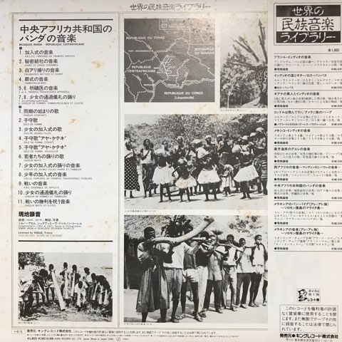 中央アフリカ共和国における最大の民族集団、バンダ族の民族音楽をフランス人類博物館が60年代に現地録音したものをDisques Vogueがが71年にライセンス・リリースした一枚。木製ラッパ、ムビア(ムバヤ)による不協和な合奏、喉鳴らしによる子守歌、ミニマルなホイッスル合奏などなどユネスココレクション盤とともに中央アフリカらしい数々の独自音楽を収めた民族音楽名盤!