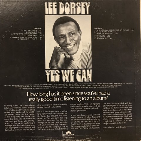 ニューオーリンズのシンガーLee Dorseyの70年作。プロデュースはAllen Toussaint、そしてバックはMetersとニューオーリンズ最強メンツによる大傑作。視聴はVan Dyke Parksもカバーしたベース太すぎの「Occapella」、Pointer Sistersのカバーでも知られるニューオーリンズ・ファンク大名曲「Yes We Can - Part I 」。