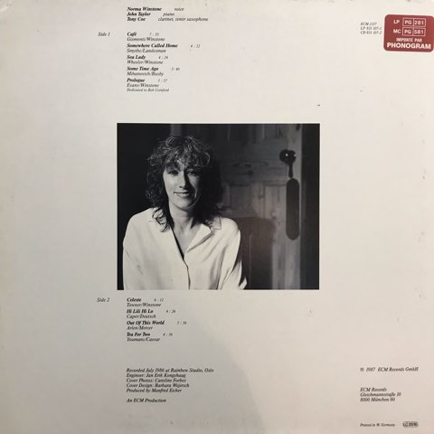 AzimuthのメンバーでNucleus、John Surman、Fred Herschなどとも共演しているUKのジャズ・ヴォーカリストNorma WinstoneがピアニストのJohn Taylorとクラリネット奏者のTony Coeによるトリオ編成でECMからリリースした87年作。Egberto Gismontiとの共作「Cafe」やRalph Townerとのこちらも共作「Celeste」など、透徹という言葉が相応しいヴォーカルと演奏が溶け合いながら空間を漂うECMらしい名作。Jan Erik Kongshaugによる録音もため息がでるほど素晴らしい。音めちゃくちゃ良いです。