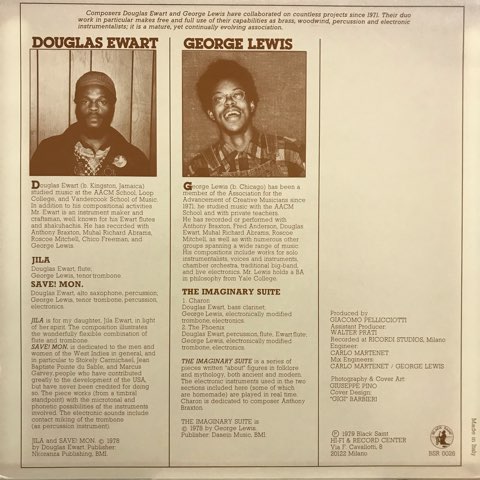 イタリアの前衛ジャズ・レーベルBlack Saintから79年にリリースされた、ともにシカゴのフリー・ジャズ集団AACMでも活動するトロンボーン/エレクトロニクス奏者George Lewisとリード奏者Douglas Ewartのデュオ・アルバム。電化トロンボーンやエレクトロニクスも取り入れお互い奇妙な音を繰り出し展開していくフリー・インプロヴィゼーション作品。エレクトロニクスと打楽器による音響宇宙作品「Save ! Mon.」、ドローンのような電化トロンボーンによるアンビエント・トラック「The Phoenix」、George Lewisの左右から出没する音の定位にもこだわられたエレクトロニクスがDouglas Ewartのバスクラと交錯する「Charon」など。