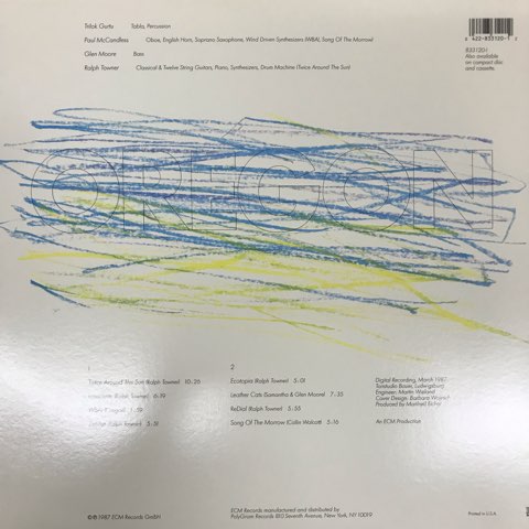 Collin Walcott 亡き後インド人パーカッショニストTrilok Gurtuを加えて制作されたエスノ・ジャズ・グループOregonの87年ECM作。Ralph Townerのシンセサイザーが今作も重要な役割を果たす今の時代にドンズバなニューエイジ・エスノ・ジャズ。清涼感溢れるジャケットも内容と合っていて最高です。