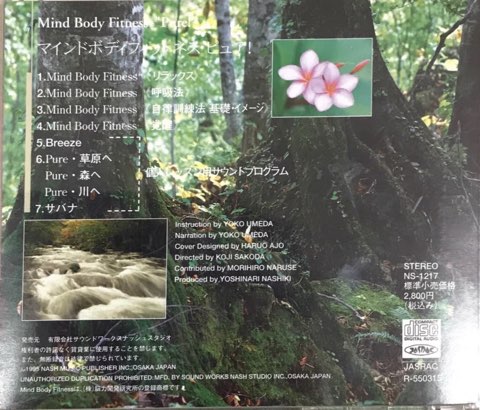 76年にレコードもリリースしているロックバンドBux解散後は環境音楽家として活動している梨木良成が音楽を担当した、瞑想とフィットネスを組み合わせたマインド・ボディ・フィットネス用のCD。梨木が代表取締役を務めるナッシュスタジオから95年にリリース。全7曲中4曲はナレーションが入りますが残りの3曲はインストで特に6曲目の「Pure 草原へ 森へ 川へ」は、この上なく優しくまろやかなシンセが鳥のさえずりや川のせせらぎと戯れる10分越えの極上ニューエイジです。至福!CDオンリー盤。Discogs未掲載。未サブスク。