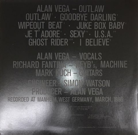 NYのミュータント・エレクトロニック・ユニットSuicideのヴォーカリストAlan Vegaが86年にドイツで行ったライブ音源を、80sジャパニーズ・ハードコア~アンダーグラウンドを代表する名門Selfishが87年にリリースした日本オンリー盤。実はElvis Presleyとはほぼ同世代のAlan Vegaによる奇形ロックン・ロールを収録。最高です!