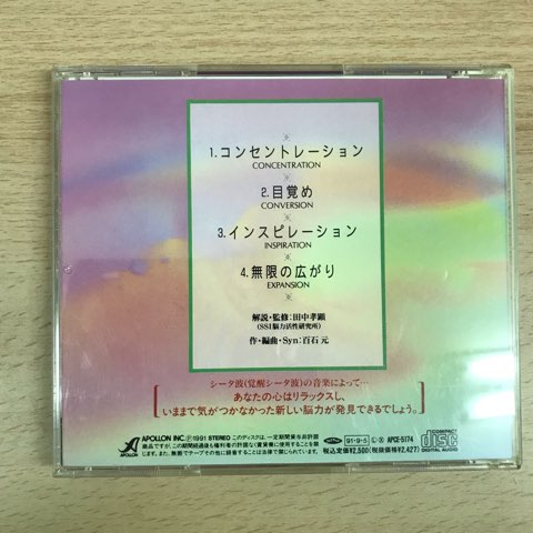 アニメ・ニューエイジ「ねこひきのオルオラネ」のサントラや人気アニメ『けいおん!』の音楽を担当したことでも知られる百石元が91年にリリースした、シータ波によるリラクゼーション・ミュージック・シリーズの内の一枚。1曲10分越えの4曲で構成された、聴いていると気が遠くなっていきそうになるディープ・ニューエイジ作品。CDオンリー盤。未サブスク化。