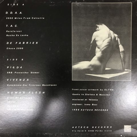 イタリアン・インダストリアル・バンドT.A.CのレーベルAzteco Recordsからリリースされたアヴァン・コンピ。フランスのアヴァンギャルド・ユニットD.D.A.A.、オランダのエクスペリメンタル・ユニットDe Fabriek、ベルギーのカルトNew WaveレーベルInsane Music主宰Alain NeffeのユニットHuman Fleshなど収録。ほとんどの曲がレコードではこの盤でしか聴けません。