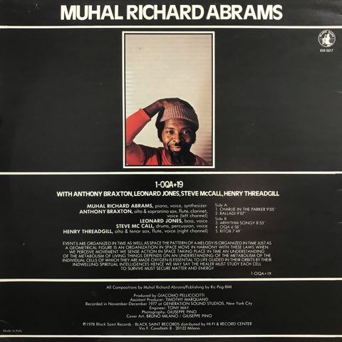 シカゴの実験ジャズ集団AACMの発足メンバーの一人にして初代会長Muhal Richard Abramsがイタリア名門Black Saintからリリースした78年作。Anthony BraxtonやHenry Threadgillが参加。個人的にもこの感じが好きすぎる、素っ頓狂な大運動会?のような「Balladi」、Muhal Richard Abramsのウニョウニョシンセが聴ける「OQA」などある種のフリージャズ好きにはハマる作品だと思います。